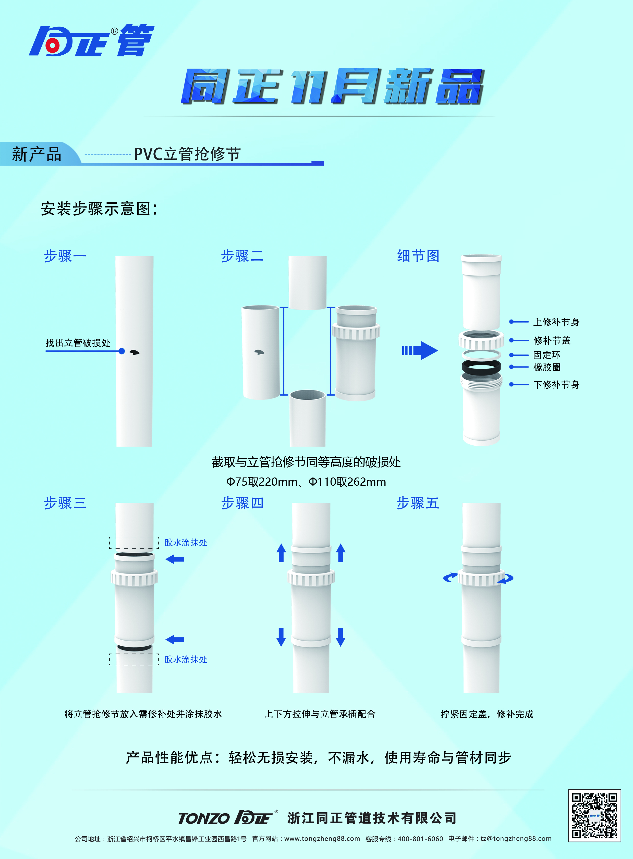 產(chǎn)品性能:輕松無損安裝,不漏水,使用壽命與管材同步